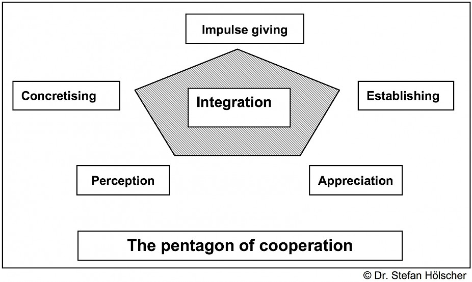Both in our professional and our private life there is a great number of relationships, in which cooperation for every kind of question and theme is central. Lacking cooperations that work would mean that we would not only be less successful, but we just could not live in the long run. Some of our cooperations are with us for a long time, others are short, sometimes last only a few minutes. A number of our cooperation dealings are characterised by stability, trust and openness and we do not want to miss them; others appear to us to be rather fragile, changeable and unpredictable or tedious, dogged and full of conflict. Of course there are, depending on the situation, various circumstances and dynamics, which determine the quality of a cooperation dealing. In spite of the diversity of influencing variables, five very fundamental factors can be pinpointed, which in general determine the productivity of cooperation. These factors are: